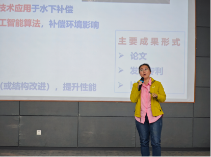 王微微老师在会上分享了其课题组的研究方向与阶段性科研成果,详细介绍了科研训练与竞赛备赛之间的内在联系,鼓励同学们在科研实践中提升工程能力与创新素养,并热情邀请有兴趣的同学加入课题组,以科研实践反哺竞赛训练,实现“以研促赛、赛研融合”的良性发展。