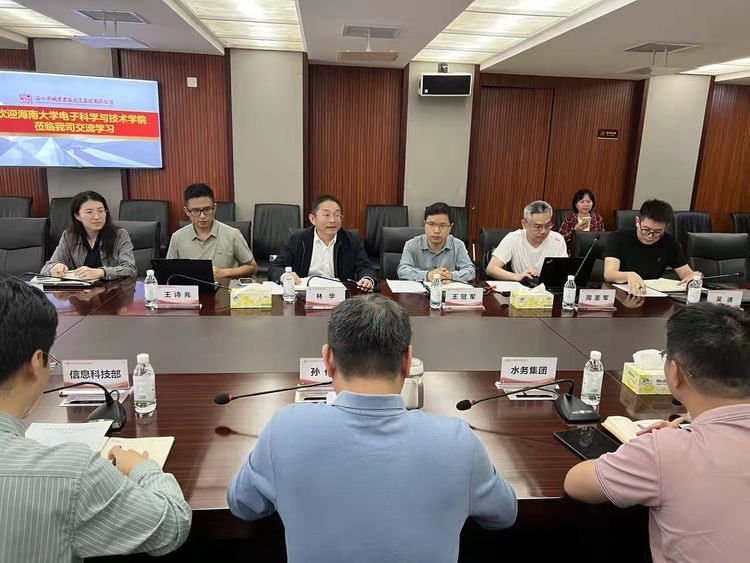 为快速响应和深入贯彻落实市委市政府和海南大学谋划“环海南大学科技创新圈方案”精神, 3 月 17 日下午,海口市城投集团与海南大学电子科学与技术学院科研合作交流座谈会在集团七楼第一会议室顺利召开。会议由集团党委书记、董事长孙传志主持,孙传志董事长代表集团对海南大学电子科学与技术学院党总支书记林华一行的到访表示热烈欢迎。双方相关负责人及业务骨干参会,重点围绕集团水务、环卫、施工等板块发展与科研攻关需求共商产学融合新路径。